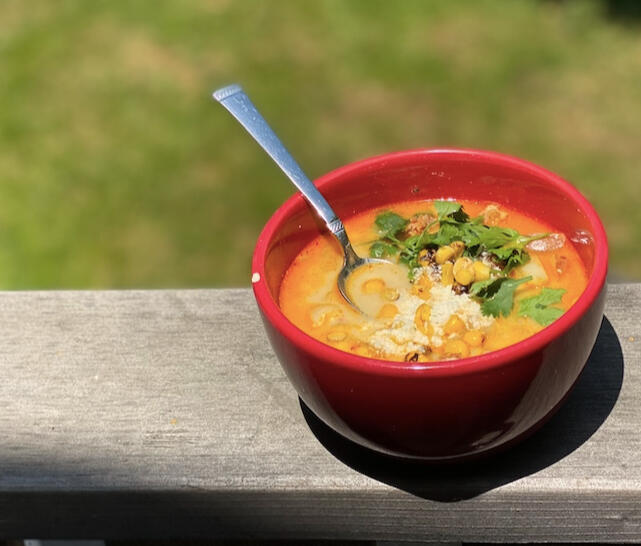 Meal 3: Grounding veggie soup with curried sweet potatoes and split red lentils